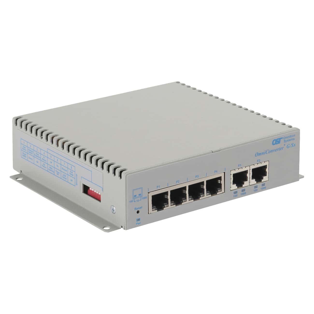 OmniConverter® G/Sx: 4 x 10/100/1Gbps RJ-45 No PoE to 2 x 10/100/1Gbps, RJ-45, No fiber, 100m, Unmanaged Ethernet Switch, Standalone/Wall-Mount, US 100-240VAC, Commercial/Enterprise Temperature Range