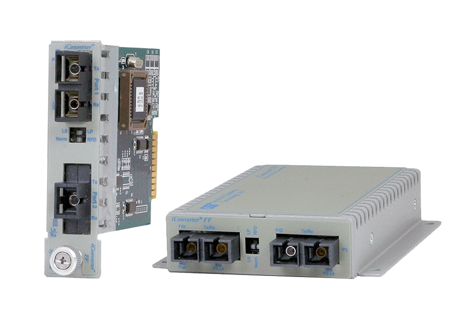 iConverter 1000FF models support multimode and single-mode dual fiber; and single-mode single-fiber with SC connectors.