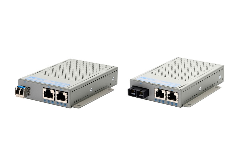 The OmniConverter FPoE+/S are industrial multi-port IEEE 802.3at PoE+ Ethernet media converters that feature one or two uplink ports and one or two 10/100 RJ-45 PoE+ user ports.