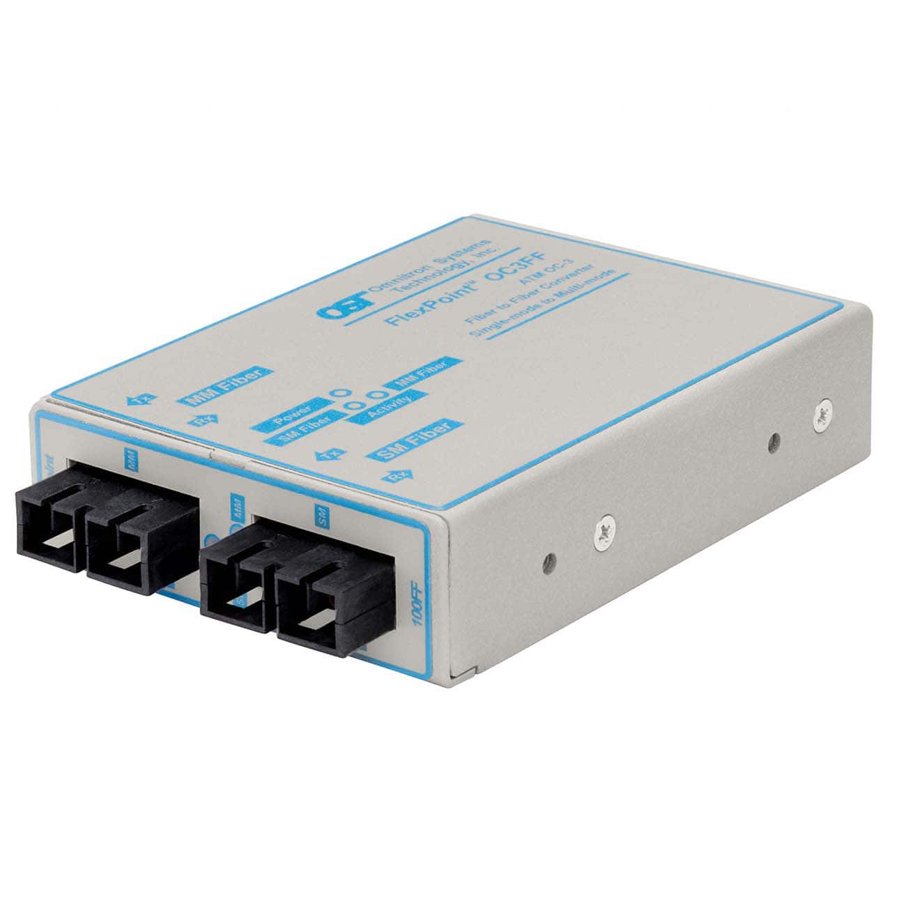 FlexPoint® OC3FF: OC-3/STM-1 to OC-3/STM-1, SC / SC, Single-mode / Single-mode, 1550nm / 1550nm, 120km / 120km, Univ 100-240VAC, Commercial Temperature 0 to 50 deg C