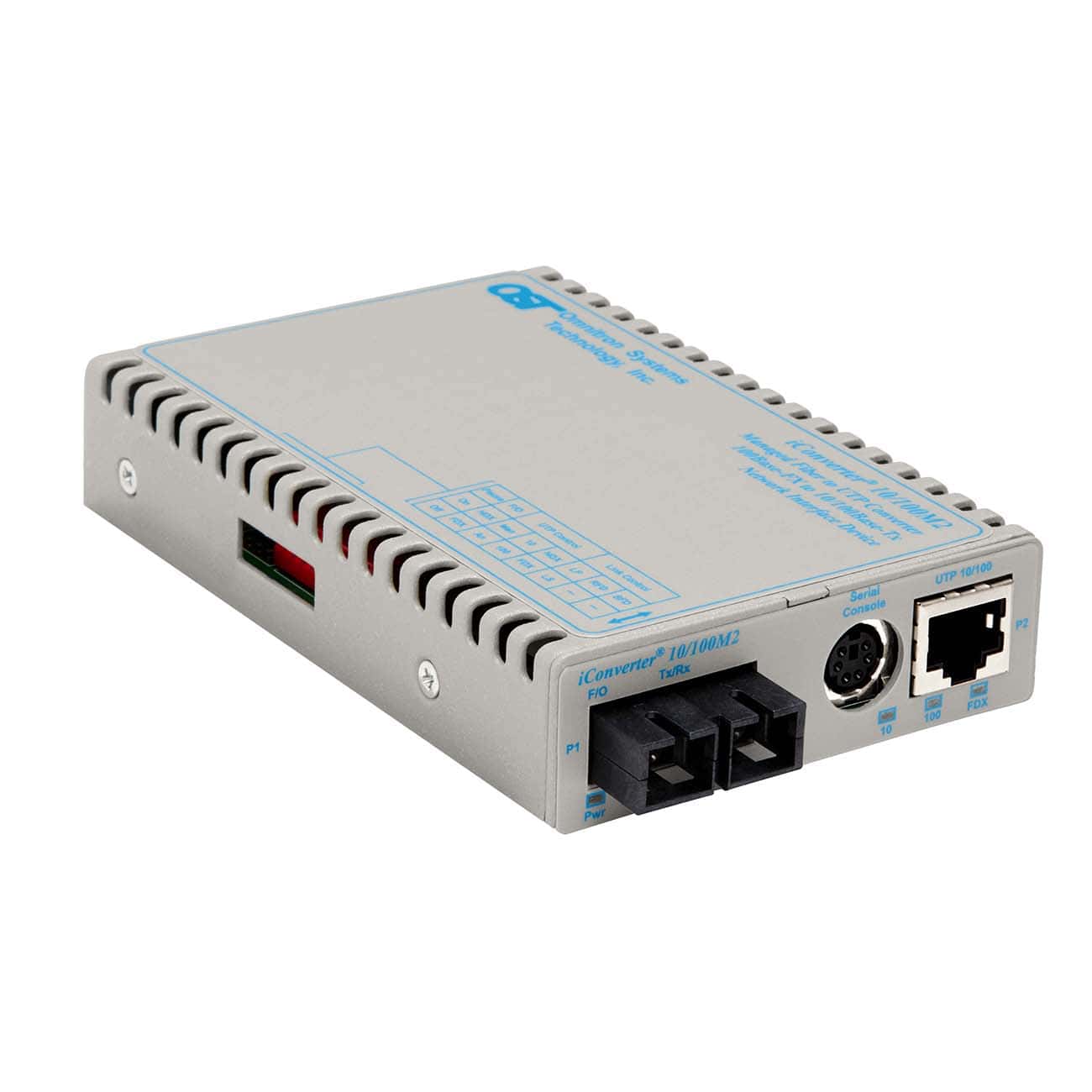 iConverter® 10/100M2: 10/100 Mbps RJ-45 to 100 Mbps, SC, Multimode Dual Fiber, 1310nm, 5km, US 100-240VAC, Wide Temperature -40 to 60 deg C