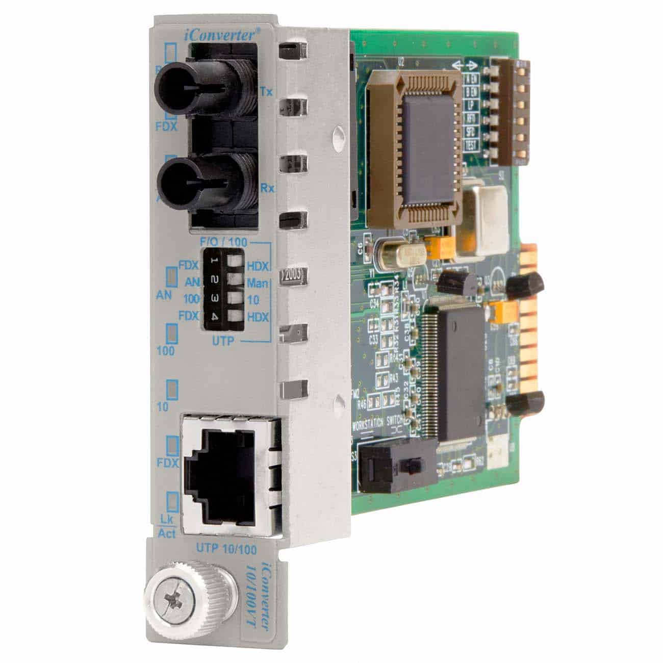 iConverter® 10/100VT: 10/100 Mbps RJ-45 to 100 Mbps, ST, Single-Mode Dual Fiber, 1310nm, 30km, Powered by Chassis, Commercial Temperature 0 to 50 deg C