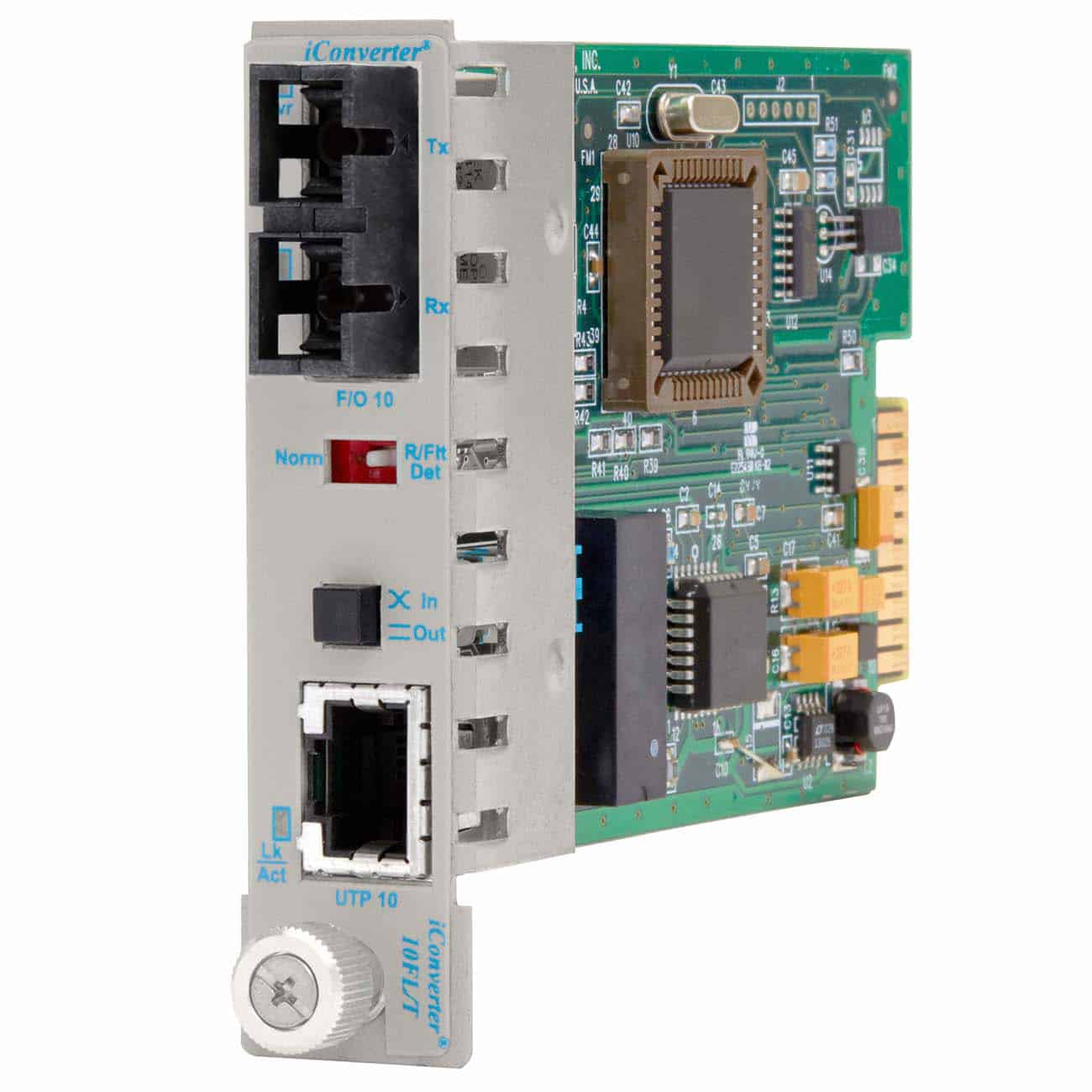 iConverter® 10FL/T: 10 Mbps RJ-45 to 10 Mbps, SC, Multimode Dual Fiber, 1310nm, 5km, Powered by Chassis, Wide Temperature -40 to 60 deg C