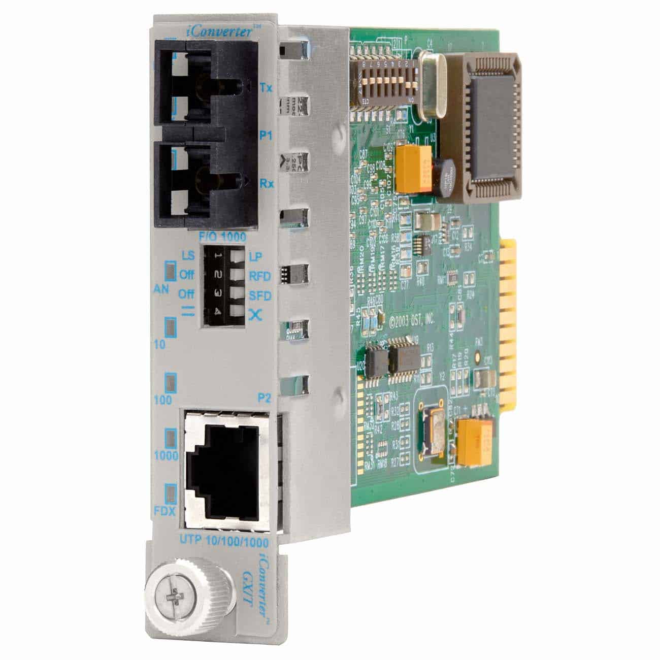 iConverter® GX/T: 10/100/1Gbps RJ-45 to 1 Gbps, SC, Multimode Dual Fiber, 1310nm, 2km, Powered by Chassis, Wide Temperature -40 to 60 deg C