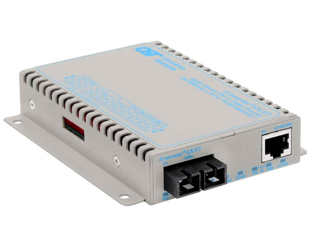 iConverter® GX/T2: 10/100/1Gbps RJ-45 to 1 Gbps, SC, Single-Mode Dual Fiber, 1310nm, 12km, Univ 100-240VAC, Commercial Temperature 0 to 50 deg C