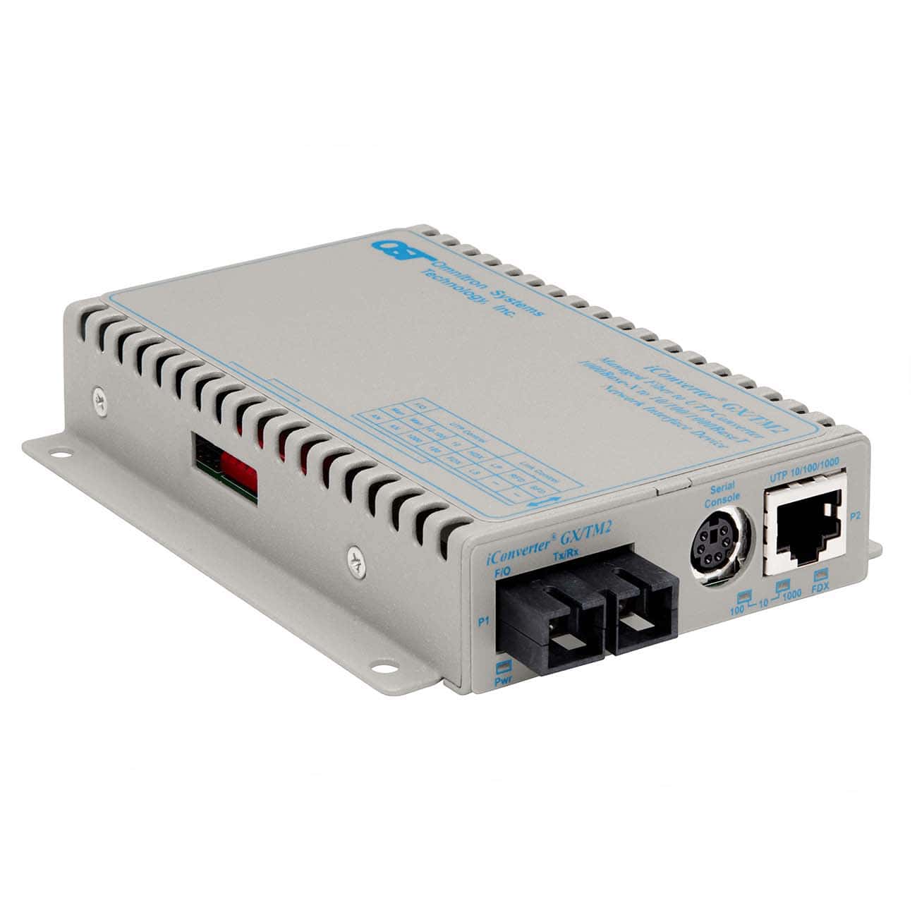 iConverter® GX/TM2: 10/100/1Gbps RJ-45 to 1 Gbps, SC, Single-Mode Dual Fiber, 1310nm, 34km, DC 2-Pin Terminal, Wide Temperature -40 to 60 deg C