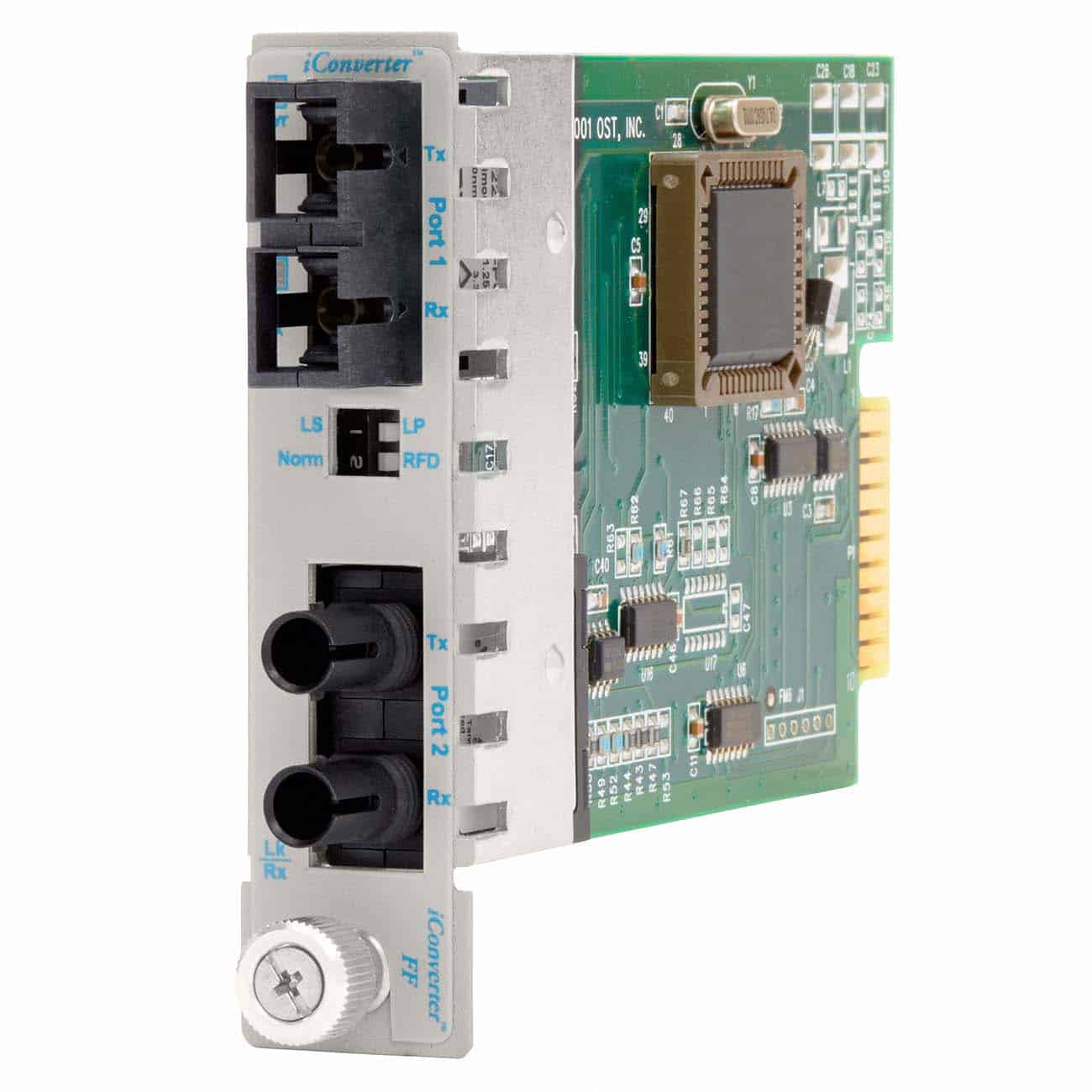 iConverter® OC3FF: OC-3/STM-1 to OC-3/STM-1, ST/SC, Multimode Dual Fiber / Single-Mode Dual Fiber, 1310nm/1310nm, 5km/30km, Powered by Chassis, Wide Temperature -40 to 60 deg C