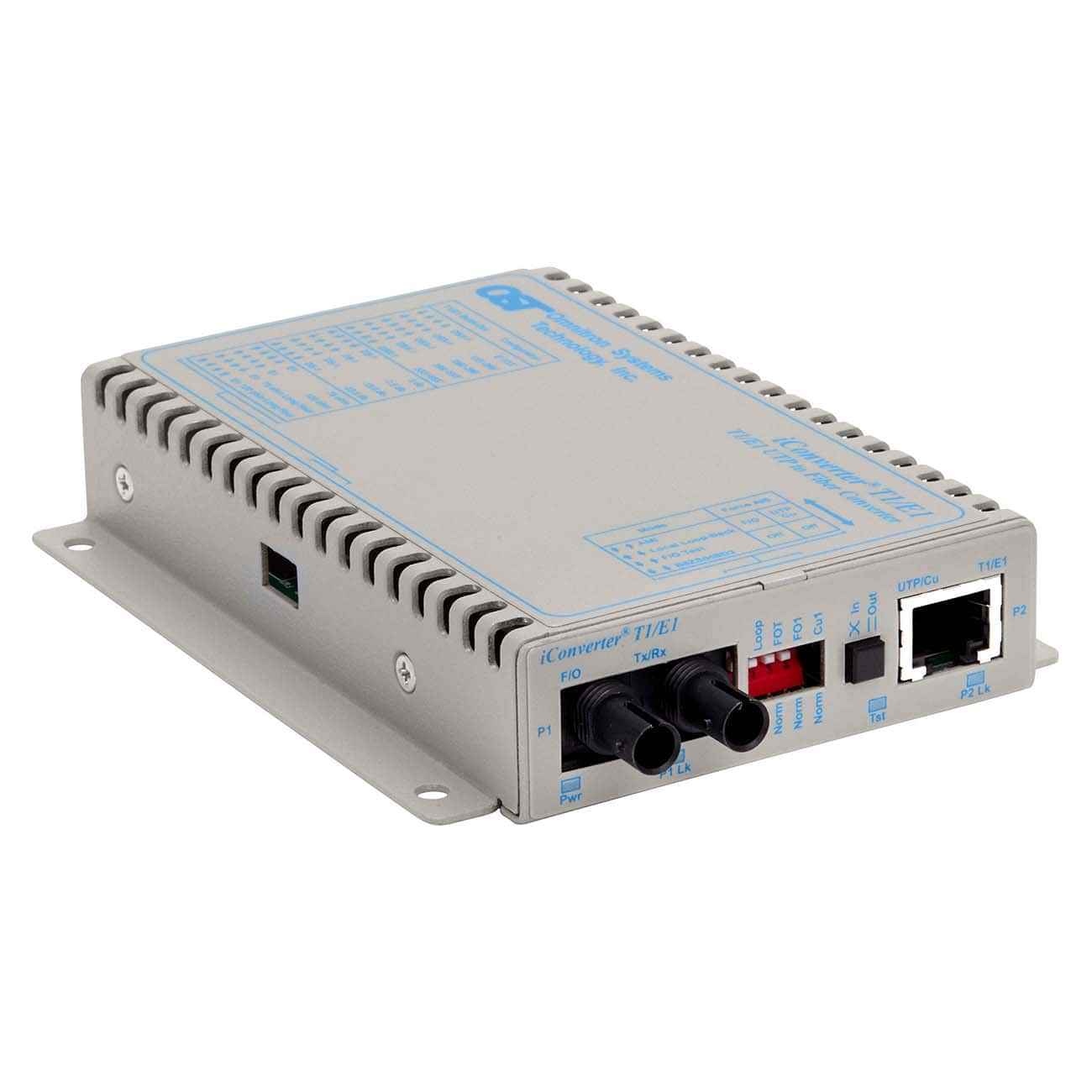 iConverter® T1/E1: T1/E1 RJ-45 to Fiber, ST, Single-Mode Dual Fiber, 1310nm, 60km, No AC/DC Power Adapter, Commercial Temperature 0 to 50 deg C