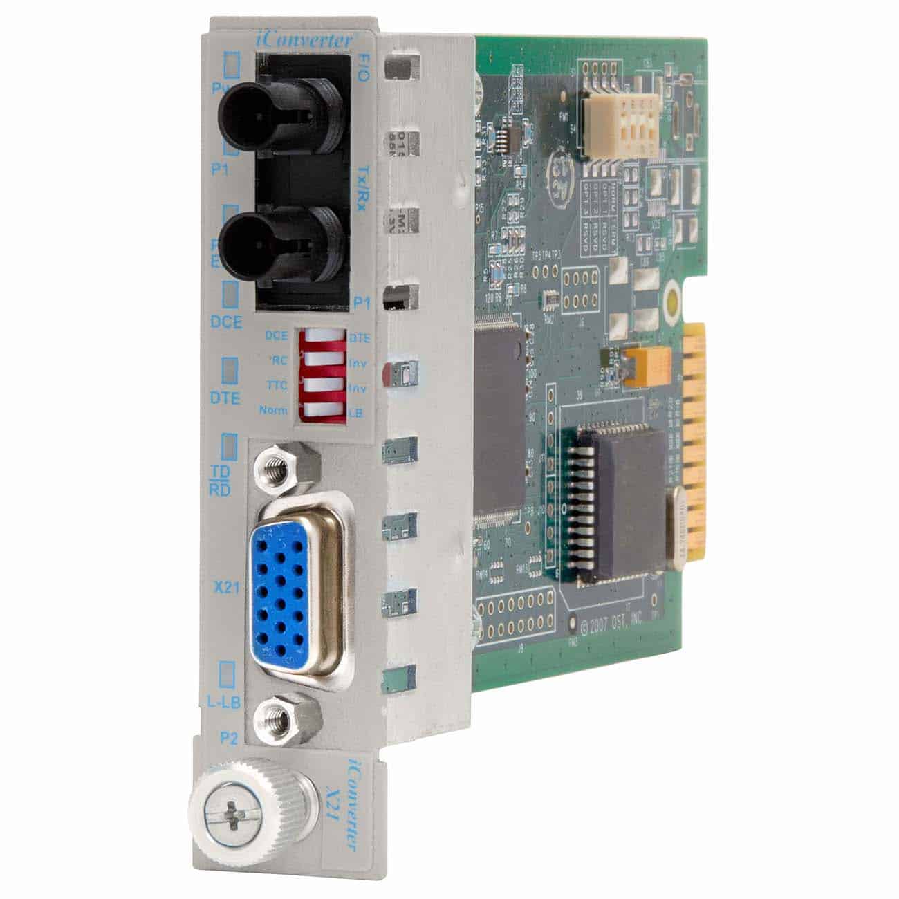 iConverter® X21: RS-530/X.21 DB-15 to Fiber, ST, Multimode Dual Fiber, 1310nm, 5km, Powered by Chassis, Commercial Temperature 0 to 50 deg C