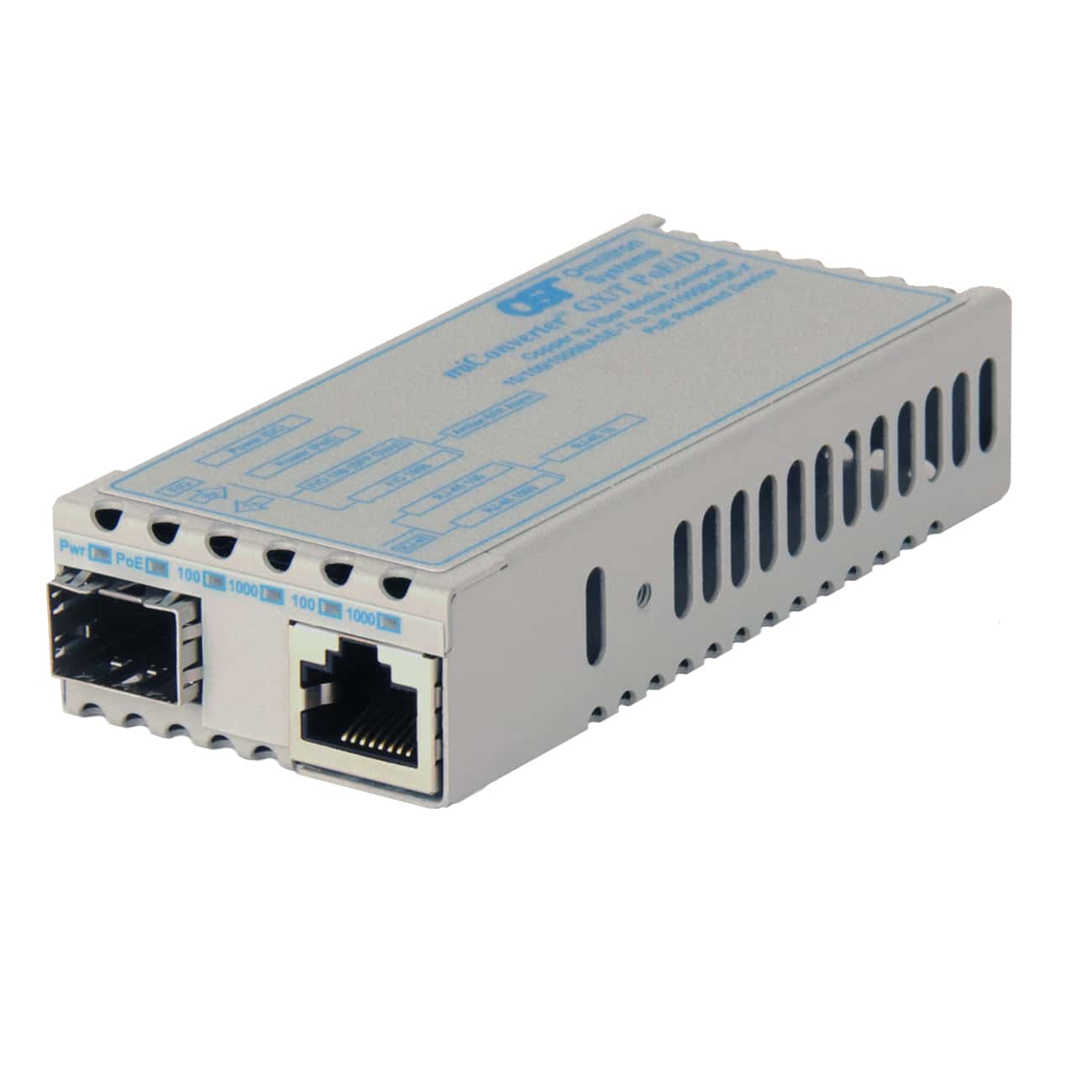 miConverter® GX/T PoE/D: 10/100/1Gbps RJ-45 to 100Mbps/1Gbps, SFP, Fiber Type depends on SFP, Wavelength depends on SFP, Distance depends on SFP, US 100-240VAC, Wide Temperature -40 to 60 deg C