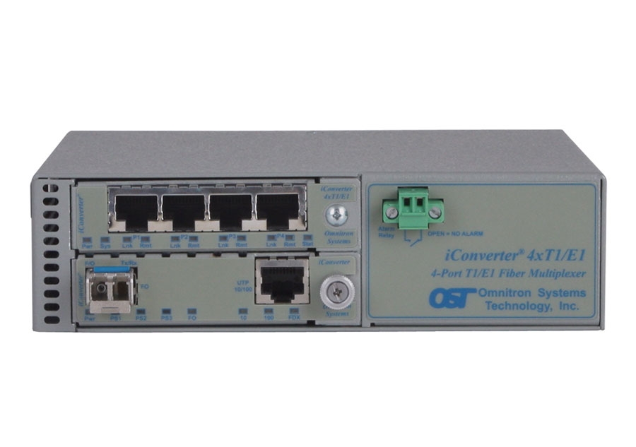 The iConverter 4xT1/E1 MUX multiplexs up to four T1/E1s and an optional 10/100 Ethernet onto a fiber optic transport link. The unmanaged T1/E1 Multiplexer provides an easy-to-use and cost-effective multi-service solution for providing TDM and Ethernet connectivity.
