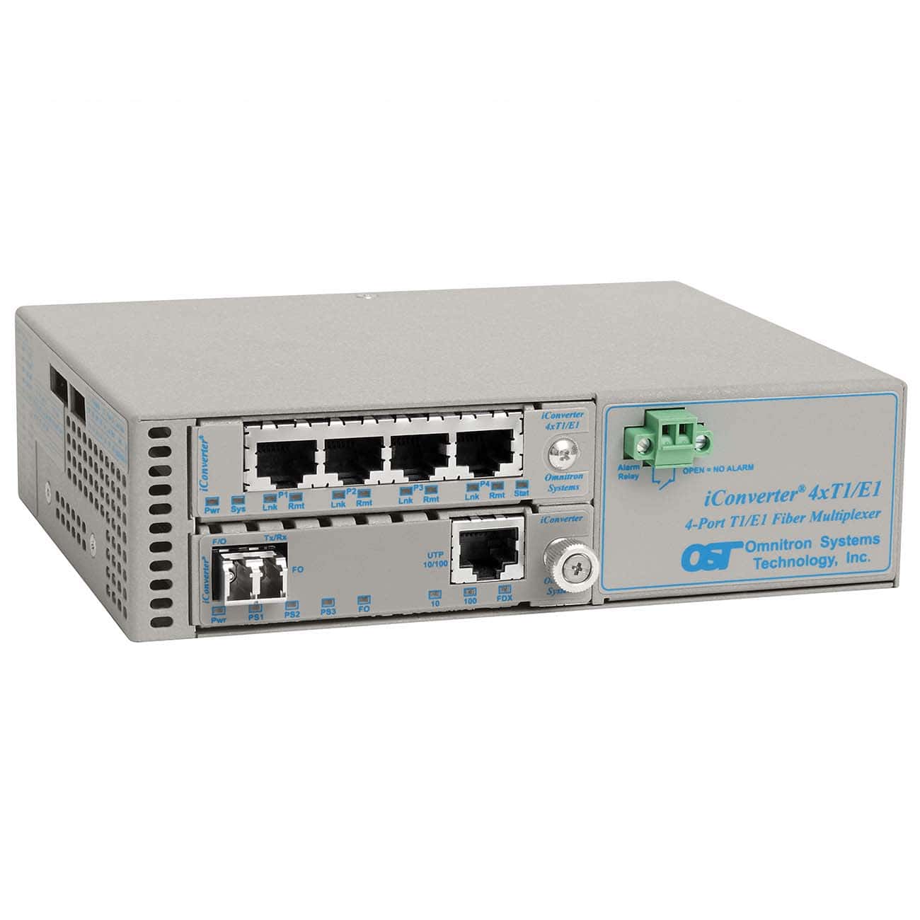iConverter® T1/E1 MUX: 4 x RJ-48 with 10/100 RJ-45 Unmanaged Multiplexer, Standalone/Rack Mount, LC , 1310nm, SM/DF, 30km, 1 x US 100-240VAC, Wide